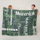 Esta moderna manta de patrones de repetición de nombres largos de color verde oscuro con un diseño de tipografía de diseño en tonos verdes, blancos y grises sobre un fondo verde esmeralda oscuro con sus nombres en un patrón tipográfico de diferentes tipos de letra. ¡Un gran regalo para la ducha de bebé y el niño del recién nacido!