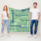 Esta moderna manta de patrón de repetición de nombre largo verde sabio cuenta con un diseño de tipografía de diseño de graffiti en tonos azules, blancos y grises sobre un fondo verde sabio con tus nombres en un patrón tipográfico de diferentes tipos de letra. ¡Un gran regalo para la ducha de bebé y el niño del recién nacido!