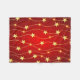 Estrellas doradas modernas conectadas con hilos sobre fondo rojo