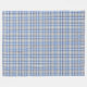 Esta manta de lana presenta un color tartán colorido (plaid) en colores blanco, azul y taupe (parduzco-gris).