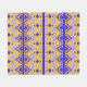 Patrón tribal de inspiración azteca púrpura y dorada con formas geométricas de triángulos.