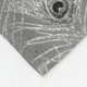 Un elegante patrón de plumas de pavo real hecho en un purpurina plateado con un fondo gris.