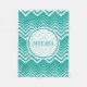 Elegante patrón geométrico de zigzag blanco, fresco patrón de chevron con fondo de pavo real que es personalizable. Monograma personalizado