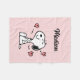 Looking for a gift that feels truly special? Take this adorable Snoopy blanket to the next level by adding a custom name!. This custom fleece allows you to pair your loved one's name with the world's most affectionate beagle in a stylish script font. With Snoopy clasping his paws in joy and floating hearts all around, it’s a one-of-a-kind present that says, "This hug is just for you."
