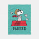 Wrap yourself in inspiration with this Personalized Snoopy "Flying Ace" Fleece Blanket. Featuring one of Snoopy's most beloved personas, this blanket captures the adventurous spirit of the World War I Flying Ace. The design shows Snoopy atop his iconic red doghouse (his Sopwith Camel), donning his aviator cap, goggles, and red scarf, ready for takeoff against a teal background. The bold text has been customized to feature your name adding a unique, personal touch to your cozy time.