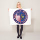 Insignia de Pennsylvania con bandera de Pennsylvania y bandera de los colores de Estados Unidos, forma redondeada. Emblema de Pensilvania. Sello de Pensilvania. Colección de Estados Unidos.