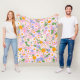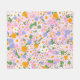 Un patrón impecable de pequeñas margaritas y flores silvestres, colocado sobre un fondo rosa pastel, con acentos naranjas brillantes y hojas verdes, creando un diseño colorido y alegre.