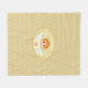 Una única manta de lana con un lindo ángel sosteniendo un patrón de corazón rosado y estrella en un fondo beige.