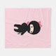 La personalizado guapa ninja chica está vestida de negro pero con un arco rosado encima de su máscara de cabeza. La tradicional espada japonesa katana se puede ver atada sobre su hombro, su mango también color rosa.