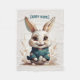 Un pequeño conejo entrañable rendido en líneas delicadas y fluidas, aparentemente enquistado en un momento de curiosidad o diversión