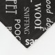 Una versión más pequeña para perros más pequeños o lugares con el mismo gran fondo negro que presenta una divertida nube de palabras de texto blanco en lingo amante de las mascotas y un hueso de perro blanco con el nombre de su mascota en negro.