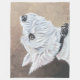 West Highland White Terrier, Westie mirando hacia arriba, en perfil con fondo marrón. Benji. Derechos reservados © 2025 Angi Laframboise. Todos Los Derechos Reservados. Regalos de raza de perros de arte fino para los amantes del perro.