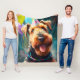 Manta Polar Perro Airedale con gorra de cumpleaños y globos