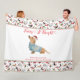 Celebra la magia de la temporada de fiestas con esta hermosa manta de lana, con adorables y traviesos cachorros de perro: dachshunds, caniche y pequeñas dobies, jugando con bolas rojas y verdes. ¡Que tus Navidades sean "Muertes y Brillantes"! El texto se muestra en una fuente de guión de pincel moderna. Personaliza con tus nombres, y pon este lindo regalo de Navidades debajo del árbol, uno para tu perro y el otro para ti. ¡Gracias por la leche y las galletas! Ayudante de Santa