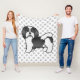 El original ilustracion personalizado de Destei de un lindo abrigo blanco y negro de color Bichon Havanais / perro de raza Havanese. El fondo tiene un patrón de huellas de perros grises.