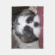 Un perro blanco y negro lindo de Shih Tzu que coloca en una manta color de rosa/rosada. La imagen adorable de la fotografía de la raza del perro de Shih Tzu imprime.