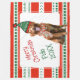 Perro gracioso con gorra elfo y bufanda, con un patrón festivo muy festivo, verde y rojo como fondo. Tipografía navideña del personalizar Merry y personalización con el nombre y el año del perro. Consejo: Subir una foto sin fondo o de fondo blanco es lo mejor. Crédito de la foto de los marcadores: Jamie Street de Unsplash. Gracias