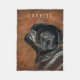 Retrato de Perro Negro Pug.Un retrato digital de pintura al óleo negro magnífico y atractivo. Vestido una camisa a rayas y con una mirada lateral/ojo de ballena, con un fondo marrón oscuro. Rico color neutro, de tierra con un aspecto rústico y angustiado. A pesar de su pequeño tamaño, los pugs tienen una personalidad destacable y encantadora. Listo para ser personalizado, simplemente añade tu nombre.