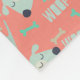 A los amantes de los perros de todas las edades, tanto niños como adultos, les encantará este lindo, divertido, caprichoso diseño de perros y huesos en objetos para el hogar, oficina y uso personal con perros azul claro, huesos de perro de agua y arcilla, y texto que lee Woof en un fondo de coral.