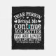 Descubrí la página por casualidad, quiera hacer un regalo a una compañera que se marchaba de la empresa y al ver la manta nos pareció una idea muy original. La verdad que teníamos nuestras dudas pero al verlo nos sorprendió la buena calidad de la impresión parecía que las letras forman parte del tejido de la manta no se notaba nada la marca de la impresión la verdad que nos sorprendió a todos y se que algunos de mis compañeros han pedido otra manta para hacer regalos a otras personas por la original y por la calidad