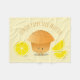 Una frazada de pulpa con caracter sonriente, limón, almíbar y aleta de semilla de amapola con lonchas de limón a sus lados. El diseño incluye las palabras "Lemon Poppy Seed Muffin" y las palabras pueden ser personalizadas.