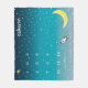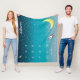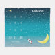 Una manta especial personalizada para bebés en un tema del espacio exterior en blanco y verde azulado azul oscuro. Tipografía moderna con lanzadera espacial, platillo volador, estrellas y luna.