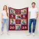Celebra tu graduación y dale un regalo especial personalizado con esta manta de graduación de collage de fotos personalizados. Esta única manta de collage de fotos para graduados será un tesoro. Personalizar con 6 de tus fotos preferidas de la universidad o de la universidad, y personaliza con el año de graduación, nombre monogramado, escuela secundaria o universidad. Vea 'personalizar esta plantilla' para cambiar fotos y personalización. DERECHOS RESERVADOS © 2020 Judy Burrows, Black Dog Art - Todos los derechos reservados. Graduación personalizada Burgundy Collage de fotos Fleece Blanket