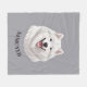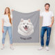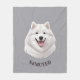 Esta manta de lana presenta una imagen de IA de un hermoso blanco samoyado en fondo gris. Personalízalo con el nombre o la foto de su mascota.