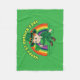 Una manta con un Ilustracion de un lindo leprechaun sonriente con un traje verde, un sombrero top mientras sostiene una hoja de shamrock, con un arco iris colorido en el fondo y un texto que dice "Feliz Día de San Patricio" Un diseño perfecto para celebrar el Día de San Patricio, dibujado por Radka2D
