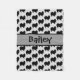 Esta manta de lana personalizado tiene una silueta de un perro pomerano con azulejos en el fondo y un lugar para un nombre en el centro.