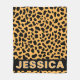 Snuggle up in style with this trendy Personalized Leopard Print Blanket! This design features a bold, classic leopard pattern (in black and bright orange/tan) and a customizable black banner across the bottom where you can add any name of your choice.