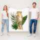 Cheetah Outlook I de Annie Warren. Un guepardo de color acuático con hojas verdes tropicales al fondo. | 164730Z