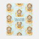 Una manta con un bonito ilustracion acuático. Un adorable león con una corona pescando estrellas sentadas en una luna creciente descansando en una nube esponjosa. Ilustracion mágico de fantasía. Fondo de color azul claro.