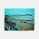 Pesca nocturna en la playa de Southwold con cachorros rojos en primer plano y muelle del sur a lo lejos.
