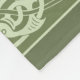 El borde de nudos celtas intercalan el diseño de los peces en tonos verdes, con un gran medallón circular de diseño de peces en el centro