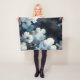 Una fascinante obra de arte floral acuática con delicadas flores blancas y azules sobre un fondo moreno e inestable. Los gradientes suaves y las pinceladas expresivas crean un ambiente de ensueño y etéreo. Perfecto para añadir un toque de elegancia y tranquilidad a cualquier espacio.