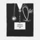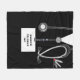 Creative medical-themed blanket for your favorite doctor, physician assistant, hospital nurse or other healthcare professional featuring black hospital scrubs, stethoscope and funny Swiss Army knife. To personalize edit text to add name or otherwise customize.
