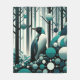 La tranquilidad de un bosque natural, entrelazado con los motivos geométricos contemporáneos en tonos verde azulados y turquesa. El entorno combina la tranquilidad del bosque con la belleza estructurada del diseño geométrico.