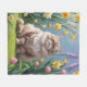 Un gato alegre se sienta tranquilamente sobre la exuberante hierba verde, rodeado de coloridas flores de primavera bajo un suave cielo azul. Esta pintura al óleo digital captura un momento sereno con pinceles expresivos, colores cálidos y un sentido de suavidad.