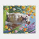 Manta Polar Pintura de flores de primavera de bulldog