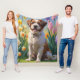 Manta Polar Pintura de las flores de primavera de los perros B