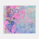 Pintura grabado en relieve expresiva sobre lienzo, creada con la técnica de paleta de pintura al óleo. Colores primarios: morado, blanco, turquesa, azul, rosa, violeta.