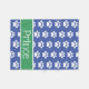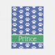 Huellas de cachorro blancas y ralladas en una manta azul mediana. Personalice la franja verde y blanca con su elección de nombre o texto especial para su "mejor amigo".