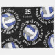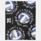 Esta divertida manta de pulpa con tema de voleibol tiene 5 bolas de voleibol azules, grises y blancos dispuestas al azar con el texto "La cancha de voleibol es mi lugar feliz" en blanco rodeando cada voleibol con una fuente casual escrita a mano, todo en un fondo negro - los paneles azules y grises de las bolas de voleibol se mezclan con un patrón artístico y giratorio para una apariencia texturística - su nombre y número de personalizable - de katz_d_zynes