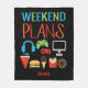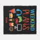 El fin de semana planifica un videojuego para niños con una manta personalizada en tres tamaños. Controladores de videojuegos, audífonos y aperitivos en un patrón para planes de fin de semana. www.SamAnnDesigns.com