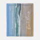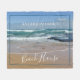 Añada estilo personalizado a su casa con esta manta de lana con temática playera. El diseño presenta una fotografía tranquila de las olas azul y blanco, cielos azules y arena dorada de la costa de Melbourne, en Australia. El texto blanco y moderno es personalizable, por lo que puedes añadir tu propio apellido. Personalizar más allá eligiendo entre otros tamaños.