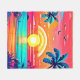 Una obra de arte de una playa tropical al atardecer, con palmeras envueltas en un cielo colorido con un arco iris (Este diseño hecho con IA). ¡Haga el pedido hoy y acepte la alegría de ir de compras!