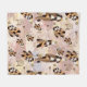 Un diseño de atrapasueños con adornos dorados y marrones que incluye un círculo de bambú redondo con una red de vida con plumas de tonos marrones y cuentas rojas sobre un fondo de plumas suaves para los recién casados