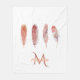 Manta Polar Plumas en rosa y coral sobre blanco monogramado