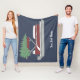 Dress up your home or pontoon boat for the holidays or create a personalized Christmas gift for pontoon boat owners. This fleece blanket features an illustration of a pontoon boat in red and white with a Christmas tree tied to the top set against a blue background. It's ready to be personalized with a boat name or other text in white script lettering.